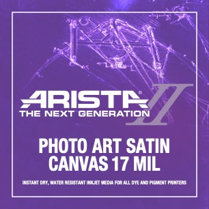 Arista-II Photo Art Canvas Satin is a Polyester/Cotton blend Canvas, 17 mil thick, with a white finish (98% brightness rating), and coated for use with inkjet printers. This canvas is great for stretching and is water resistant. The brighteners used in the canvas allow for some of the whitest white in canvas media.