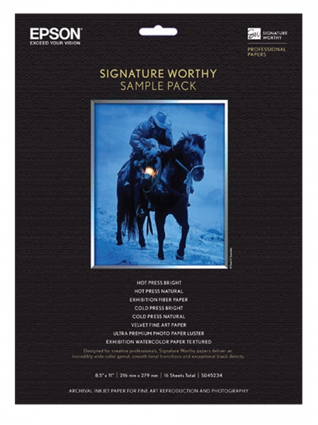 This is a fourteen (14) sheet medley pack (letter size) of all current Epson Signature Worthy Papers - two (2) sheets each of seven (7) different papers - that are designated by Epson as the highest quality media products for both photographic and fine art output.