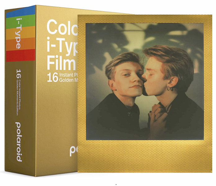 Treasure the good times and make them shine with the Golden Moments Edition i-Type film. 16 color instant photographs finished in smooth metallic gold.